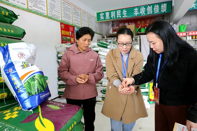 焦做市山阳区纪委监委聚焦夏粮抢收、病虫害防治、防汛减灾等环节环节,纪巡联动体例开展监视查抄,图为该区纪检监察干部正在种子公司开展监视查抄。(焦做市山阳区纪委监委 摄)。